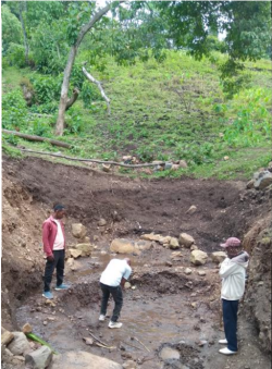 The spring excavation shall be done carefully not to disturb the spring eyes. The excavation continues from bottom to upward following the water until spring eyes outlet are well defined.