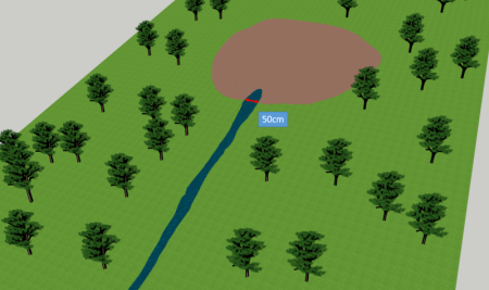 Then the area surrounding the spring must be cleared to create a suitable working area (at least 5m all around the point located above). Trees, bushes, crops, grass must be removed.