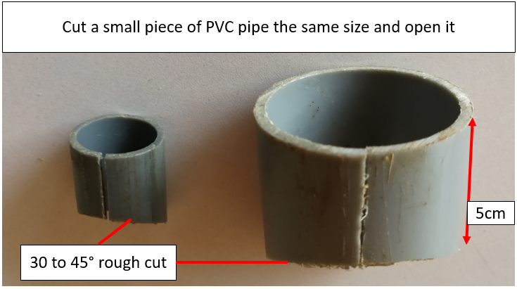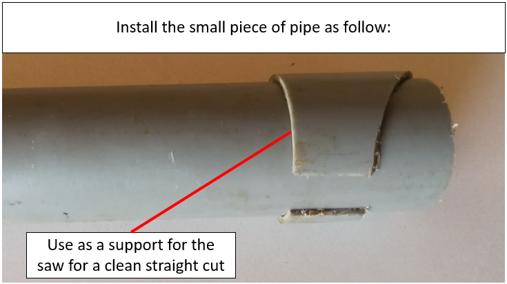 For outlets cut pipes, it is very important to realize a clean 90° cut to respect the distribution design of the DB. Use a small piece of PVC pipe the same size as a support for the saw: