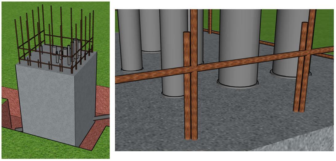 Before casting the bottom slab, glued fitting for PVC pipes must be installed as follow: