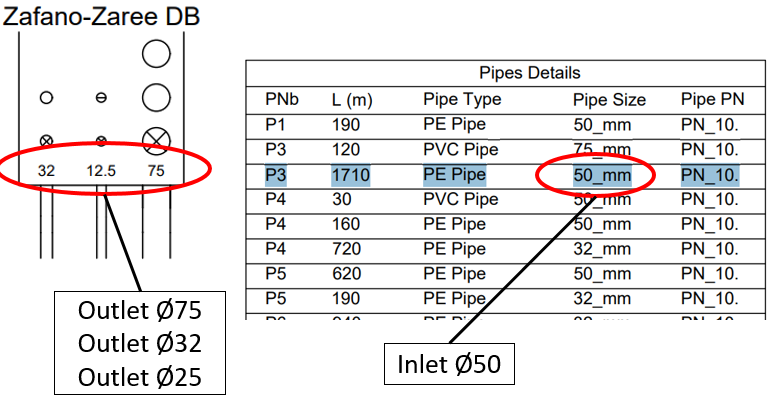 - Inlet diameter is the same as the DB upstream pipe. If the pipe has different diameters, the inlet diameter is the same as last section of it: