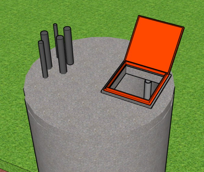 Build a concrete slab cover (10 cm thick) with small door (40x40cm). Details for door installation can be found here: Doc n° MF4-M15 “General construction standards” § Metal door installation: