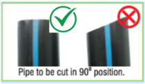 Between 2 HDPE coils, a connector must be installed. For small diameter pipes (⌀25, ⌀32mm) the method below can be used (every fitting must be carefully inspected before installation):