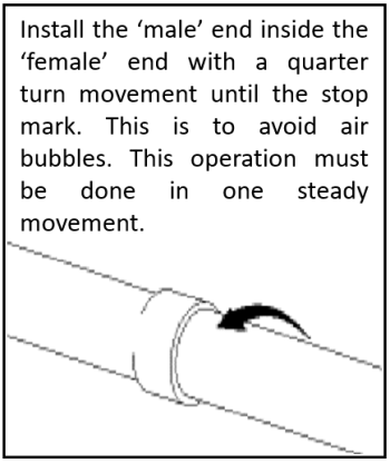 It is not so easy to plug HDPE connectors with big pipes (⩾ ⌀50mm), direct plugging of the pipe in the connector body with the gasket inside is not recommended (it may damage the gasket). The best procedure for this connection is a 2-step process described below. Every fitting must be carefully inspected before installation.