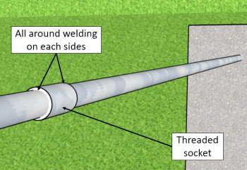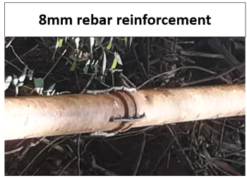 If the crossing is more than 6m, during transfer decide, with the support of designer, if the sockets need reinforcement (considering size of the pipe and length of the crossing). Here are 2 methods of welded reinforcement installation: