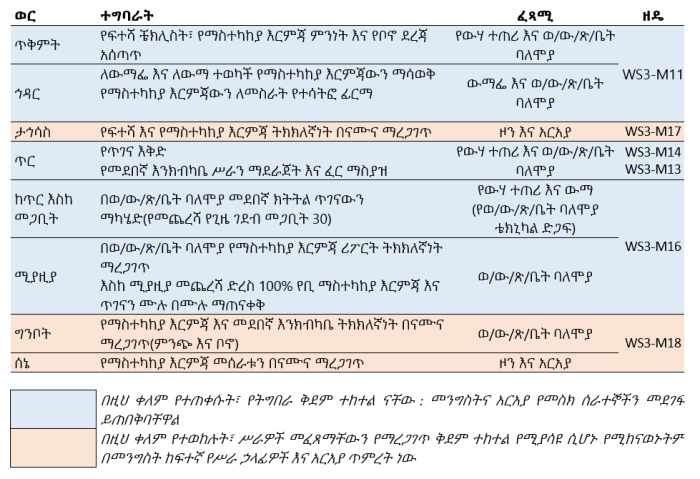- ደረጃ 1 (1 የቢሮ እና 1 የመስክ ክፍለ ጊዜ ለየዞኑ)